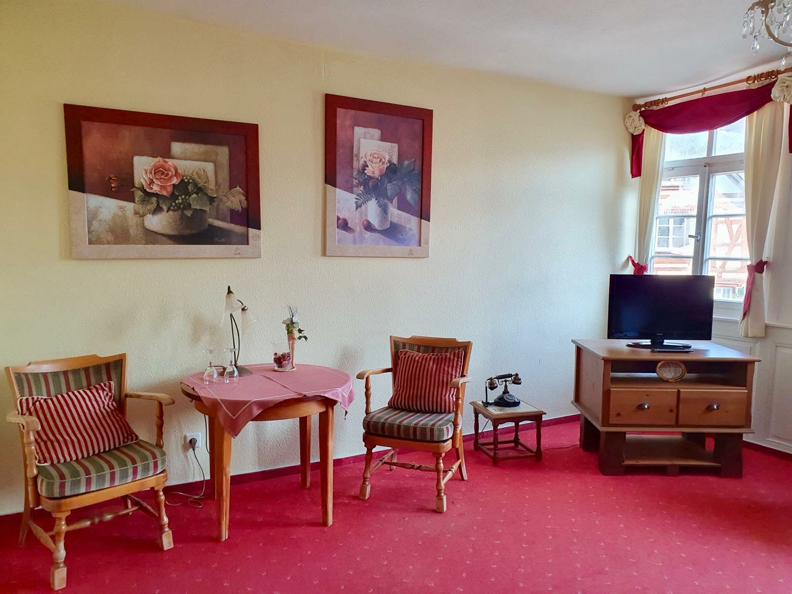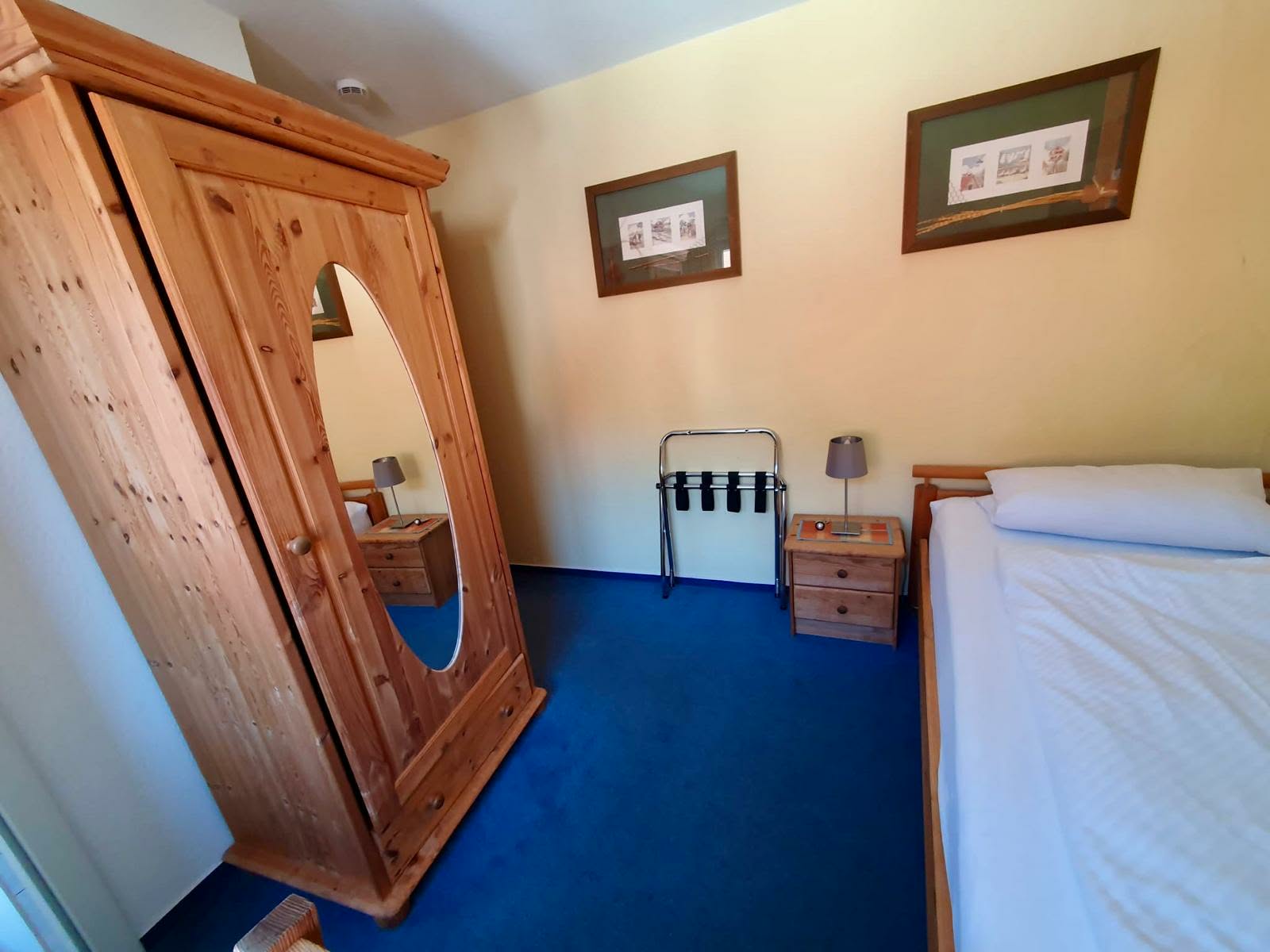 Die Zimmer sind funktional und gemütlich eingerichtet. Zur Ausstattung gehören – je nach Zimmer – Schreibtisch oder Tisch, ein Föhn sowie ein moderner Flatscreen-TV. Für Familien stellen wir auf Wunsch auch Kinderbetten (gegen eine Gebühr von 10,00 € pro Nacht) zum Zustellen bereit, damit sich auch unsere jüngsten Gäste wohlfühlen. Ebenso liegen einige Pflegeprodukte und eine Flasche Mineralwasser bei Ankunft für Sie bereit.