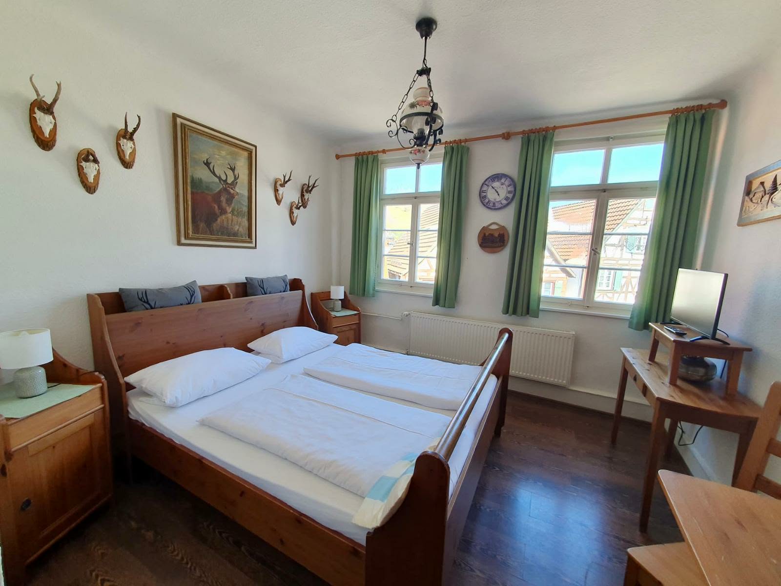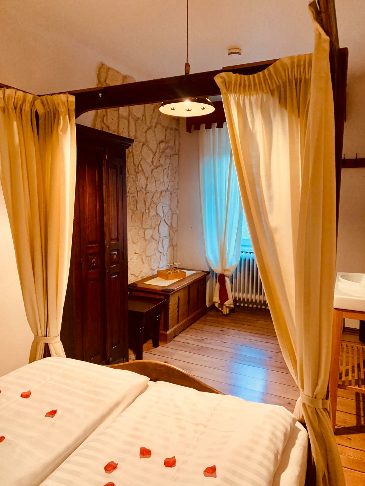 Unsere Doppelzimmer verfügen über komfortable Betten mit einer Breite zwischen 1,60 m und 2,00 m und bieten ausreichend Platz für erholsamen Schlaf. Für Alleinreisende stehen Einzelzimmer mit Betten zwischen 1,00 m und 1,40 m zur Verfügung. Einige Zimmer bieten zudem eine schöne Aussicht auf den historischen Marktplatz von Schiltach, was Ihren Aufenthalt besonders charmant macht.